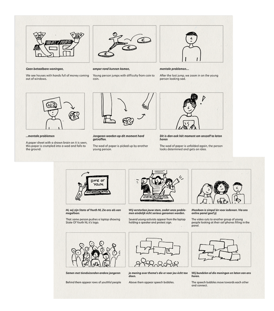 State of Youth is een jongerenpanel/platform waarmee doorlopend opgehaald wordt welke onderwerpen jongeren belangrijk vinden en hoe zij hierover denken. Voor de lancering van het platform heb ik tijdens mijn stageperiode bij NJR meegedacht over de opzet en lancering van de Nederlandse variant van het platform. Daarnaast heb ik de campagnevideo voor de lancering van het platform mogen maken waarin uitgelegd wordt wat State Of Youth is en wat het kan betekenen voor jongeren. Hiernaast heb ik ook enkele advertenties mogen animeren, deze waren o.a. te zien in Hoog Catrijne Utrecht, Alexandrium Rotterdam, Theater het Spui Den Haag, Arcade Tilburg & Amsterdam.